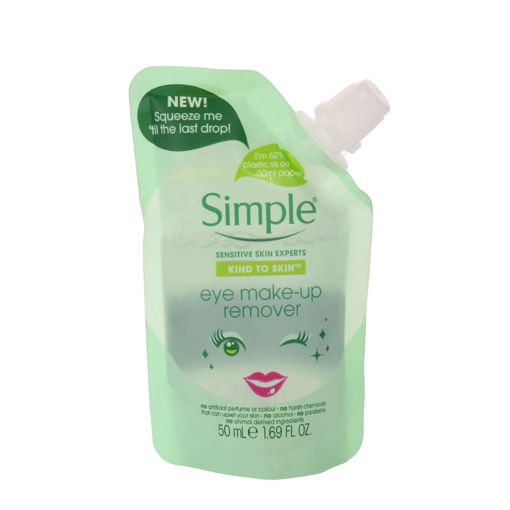 محلول پاک کننده آرایش چشم سیمپل Simple در یک چشم به هم زدن آرایش چشم و حتی ریمل و آرایش ضد آب را پاک میکند.