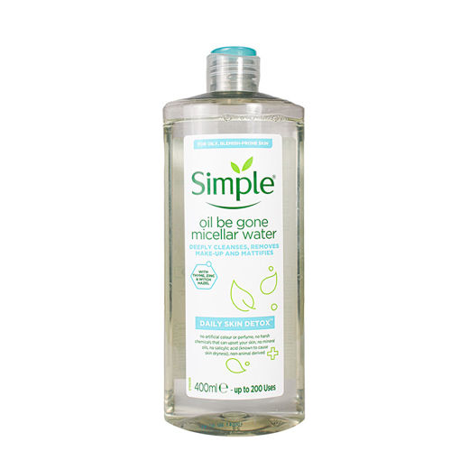 میسلارواتر پوست چرب سیمپل Simple با ترکیبی از سم زدایی آویشن ، روی و فندق جنگلی پوست را پاکسازی و هرگونه آلودگی، چربی و آرایش را از روی پوست به طور کامل پاک میکند.