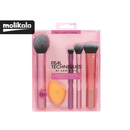 ستبراش پددار ریل تکنیک Real Techniques ستی شامل چهار براش و یک اسفنج فوق العاده است. که تمام نیاز شما برای داشتن میکاپی زیبا را فراهم میکند. این براشها از پرزهای بسیار لوکس و نرمی ساخته شدهاند. که باعث شده بسیار صاف و نرم باشند.