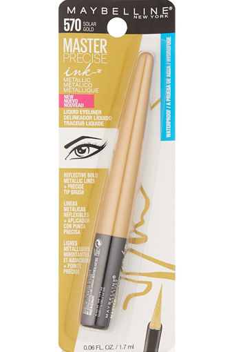 خط چشم طلایی متالیک Solar Gold میبلین Maybelline یکی از این محصولات است که دارای ماندگاری بالایی است و به دلیل داشتن رنگ براق (متالیک) جلوه زیبایی به ظاهر شما خواهد بخشید.  یکی از بخش‌های آرایش چشم که بسیاری افراد باوجود سختی آن علاقه زیادی به آن دارند، خط چشم است. خط چشم‌ها در انواع مختلفی مانند مویی و ماژیکی تولید می‌شوند که هر فردی باید متناسب با نیازهای خود یکی از این محصولات را استفاده کند.