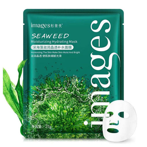 ماسک ورقه ای جلبک دریایی ایمیجز Images  به واسطه خواص منحصر به فرد جلبک دریایی پوستی جوان، شاداب و درخشان را به شما هدیه می دهد. این ماسک ورقه ای به افزایش کلاژن و الاستین پوست صورت کمک زیادی میکند که این امر باعث رفع چین و چروک های پوست میشود و از افتادگی پوست جلوگیری میکند.ماسک جلک دریایی با آبرسانی عمیق پوست باعث نرمی و لطافت پوست صورت میشود.
