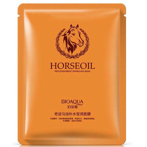 ماسک ورقهای صورت روغن اسب بیوآکوا Bioaqua یکی از بهترین ماسکهای برند بیوآکوا است و همانطور که میدانید بیوآکوا در تولید ماسک ورقهای تبحر و مهارت خاصی دارد. این ماسک صورت تسکین التهابات و قرمزی پوستهای حساس را به همراه دارد، کلاژن ساز و محرک متابولیسم سلولی است، آبرسان و هیدراته کننده پوست میباشد، حاوی ویتامین E است و همچنین مواد مفید و ارگانیک و چربیهای ضروری را نیز دارا میباشد.